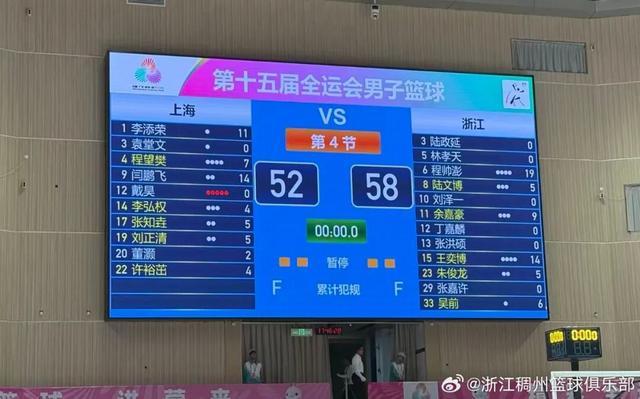 浙江队本场首发阵容由程帅澎、陆文博、余嘉豪、王奕博、朱俊龙组成。上半场余嘉豪中距离命中首获两分,上海队手感一般,浙江队趁机拉开比分,虽然外线三分未开,但在前场篮板拼抢上队员们有着良好的表现。下半场余嘉豪出现体能问题,上海队中锋闫鹏飞连续得分,三节战罢双方战至41:41。第四节浙江队增加了更多进攻手段,在吴前的率领下,对对手进行了轮番冲击,程帅澎借挡拆之后突破得手,陆文博、程帅澎均有得分,打出一波11:2,打乱了上海队的节奏,最终取胜获得半决赛名额。