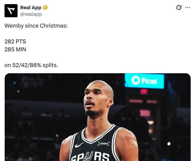 不得不感叹文班亚马恐怖的进攻效率,自从年终大战后,文班亚马一共仅出战285分钟,却拿下282分,几乎一分钟拿一分,并且三项命中率高达52/42/86%,这样的表现也解释了马刺队为何对待文班的伤病问题如此谨慎,一直采取“小伤大养”的方式让其获得更多休息,因为文班的天赋肉眼可见,只要能够长久保持健康,他势必将是NBA下一个十年的绝对门面人物。