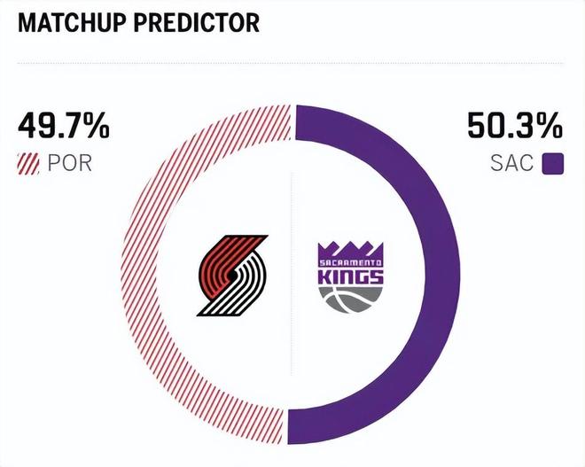 两队本赛季已经交手两次,开拓者两战全部取胜,而两队近10次交手,开拓者取得7胜3负,胜率高达70%,同样占尽优势。赛前,美媒ESPN对本场比赛进行了胜率预测,开拓者的胜率意外仅有49.7%,稍占劣势,国王队的胜率则为50.3%。