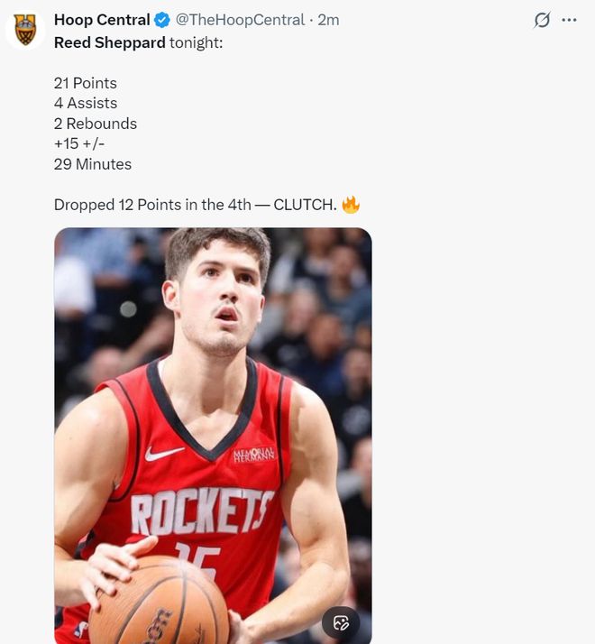 谢泼德末节12分登全美热搜!火箭官方为他鼓掌 休媒盼给核心地位