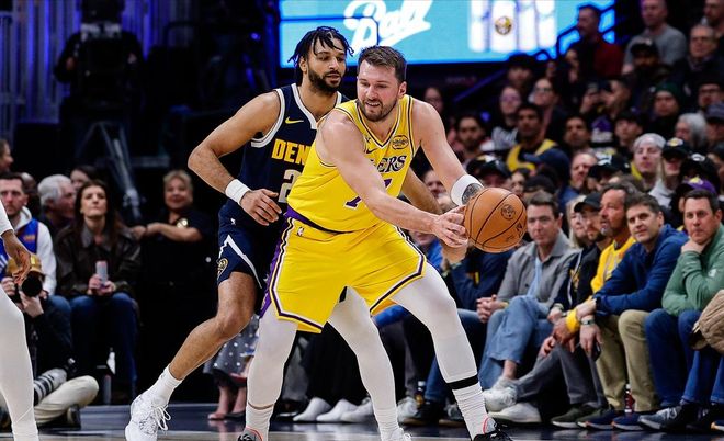 湖人客场挑战老冤家掘金,尽管对手阵中没有约基奇坐镇,但实力依旧不容小觑,上半场穆雷内突外投拿到26分,紫金军团被打得节节败退,易边再战,湖人改变防守策略并取得奇效,最终在东契奇带领下完成16分大逆转,豪取两连胜。