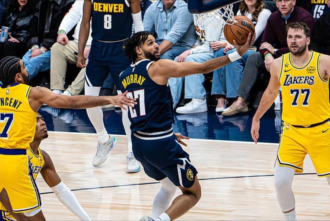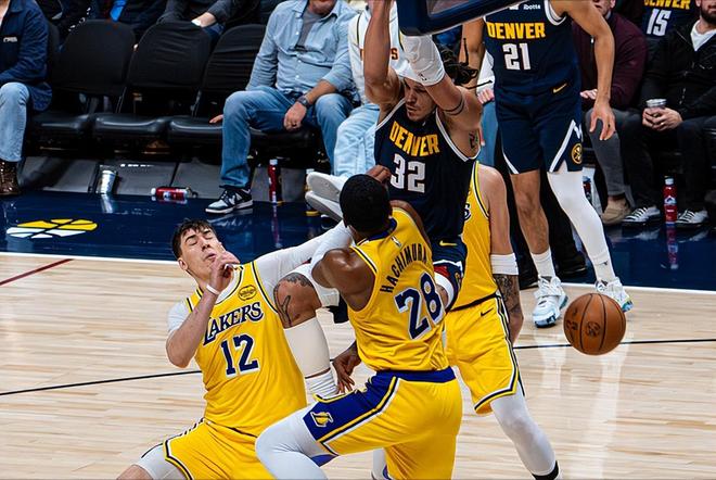 所以今天这场比赛,掘金队一度领先湖人队多达16分!虽然没有约基奇,但还有穆雷。这家伙一打湖人就来劲,巴不得一整个赛季都打湖人!整个上半场,湖人队拿穆雷毫无办法,半场26分,包括一记压哨半场超远三分,几乎是一己之力打崩了湖人。第三节,湖人队的另一阴影戈登三分命中,分差正式来到了16分。不过掘金队今天成也三分,败也三分。下半场比赛,掘金队全员三分失准,湖人队因此抓住了机会。这段时间,湖人队核心东契奇爆发,在第三节末的时候将分差一度缩小到了2分!末节比赛,更是一鼓作气,率队直接完成了反超!