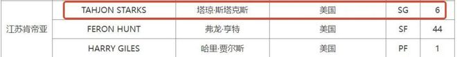 如今江苏男篮官宣签约得分手塔琼-斯塔克斯,他的加盟能否提升球队进攻火力值得期待。目前CBA官方公布的最新外援注册信息,塔琼-斯塔克斯已经完成注册,将在今日对决宁波男篮的比赛迎来加盟首秀,