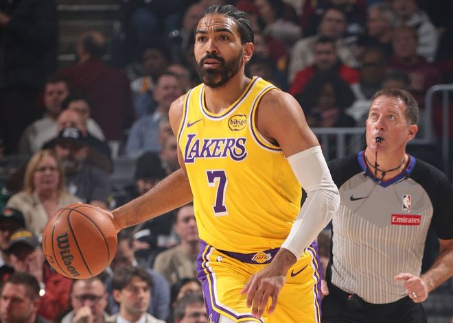 本场比赛中,湖人的替补后场大将盖布-文森特(Gabe Vincent)难得找到了自己的外线投篮手感,但是他的整体表现其实还是比较一般的。文森特全场出场24分31秒,投篮6中4,三分线外5中3,得到了11分3篮板1助攻的数据,还有2次失误和1次犯规,正负值为-12。文森特在进攻端出人意料地找到了手感,得到了两位数的分数。要知道11分已经是他本赛季的单场第二高得分了,他在进攻端的表现竟然已经远远超出了他自己的赛季平均水平。不过问题就在于,文森特除了命中了3个三分以外在其他方面的作用都非常有限,他其实并不是可靠的防守者,他并不能在防守端起到更大的作用,甚至因为身高不足经常被针对。不仅如此,作为一名后场球员他也是一点传球和组织能力都没有。总体来看,他的表现其实还是缺乏亮点的,他只是命中了3个三分而已。