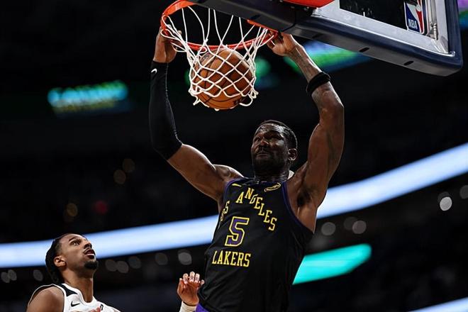 本场比赛中,湖人的先发中锋德安德烈-艾顿(DeAndre Ayton)的表现令人刮目相看。艾顿全场出场28分57秒,投篮14中12,罚球4中4,以极高的效率拿下了28分13篮板1助攻1抢断3盖帽的数据,其中还包括了5个前场篮板,还有1次失误,正负值更是达到了全场最高的+30。艾顿在进攻端势不可挡,他展现出了超强的篮下得分能力,他在对手内线简直是弹无虚发势不可挡。艾顿通过前场篮板争抢拿到了大量的出手机会,他的数据其实也在一定程度上来自于自己的努力。不仅在进攻端有着出色的表现,艾顿在防守端的表现同样出色,他在篮板保护和护筐方面的表现都算得上是可圈可点的水平。总体来看,艾顿打出了攻守兼备的表现,他也为球队的这场大胜做出了巨大的贡献。