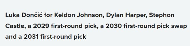 湖人得到:凯尔登-约翰逊、迪伦-哈珀、斯蒂芬-卡斯尔、2029年首轮签、2030年首轮签互换权、2031年首轮签