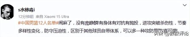 庞峥麟落选男篮出征名单引热议!球迷打抱不平“选人标准惹争议”