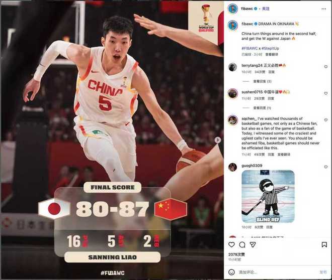 FIBA随后修改争议帖子,并将文案修改为“中国男篮下半场翻盘,击败日本男篮”,但最初并未公开道歉。