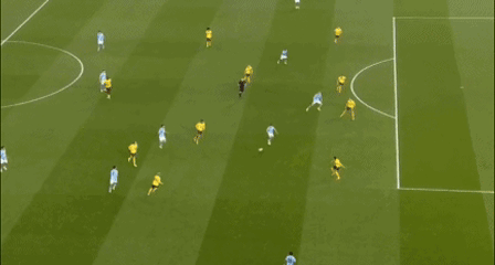 比赛第22分钟,赖因德斯送出直塞,太子福登停球、转身、拔脚,一气呵成,皮球直奔死角,曼城1-0领先。