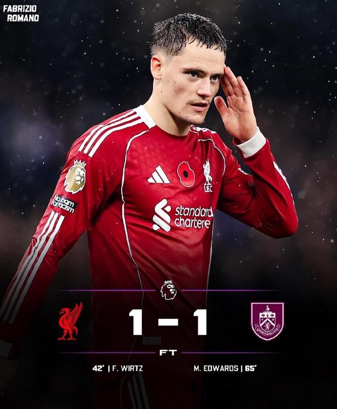 进入2026年之后,利物浦遭遇了一波联赛3连平,在曼联和切尔西同样未能取胜下,斯洛特的球队还是守住了英超前四的位置,并且在上周的足总杯拿下了新年首胜。北京时间1月18日凌晨英超第22轮,利物浦在安菲尔德对阵来访的伯恩利;索博斯洛伊点球不进,维尔茨破门渐入佳境,马库斯-爱德华兹扳平比分,利物浦爆冷遭遇4连平。