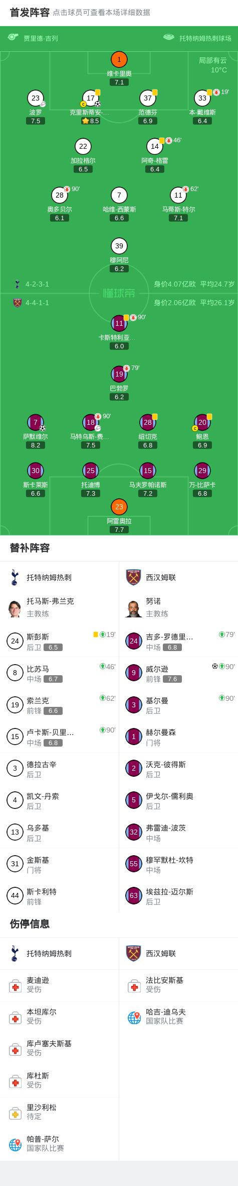 第19分钟,热刺被动调整,本-戴维斯腿部受伤离场,斯彭斯替补上场