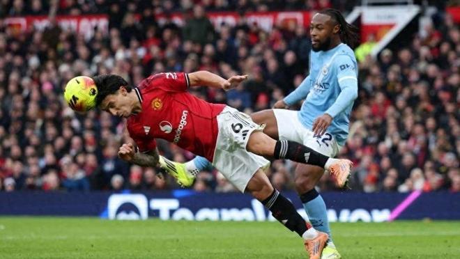 左中卫利桑德罗·马丁内斯频频送出精准长传,直接绕过曼城中场,打对方防线身后。