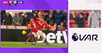 比赛第81分钟,诺丁汉森林后卫埃纳在禁区内疑似手球,主裁判迈克尔-奥利弗没有判罚点球,VAR介入后维持原判。