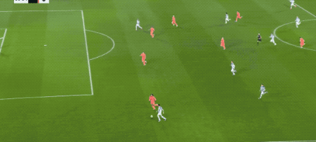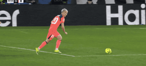 第7分钟,巴萨加强前场逼抢,奥尔莫没有踢到皮球,倒是踢倒了久保建英,费尔明的射门直奔死角。