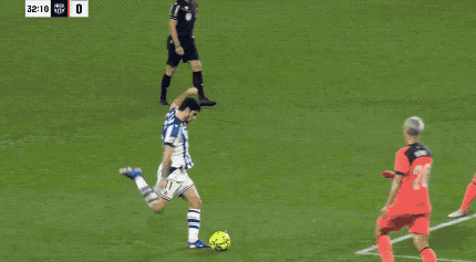 久保建英和奥亚萨瓦尔都向裁判投诉,VAR介入,认定奥尔莫犯规在先,进球无效。