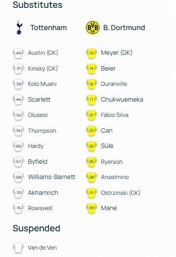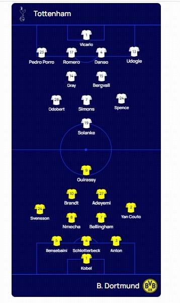 热刺vs多特:索兰克PK吉拉西,阿德耶米、西蒙斯出战
