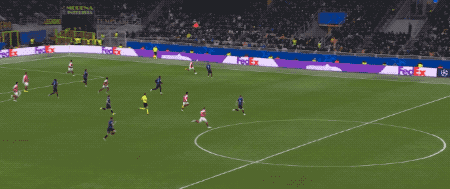 60分钟后,两队都开始换人调整,国米的变化立即收到了效果,埃斯波西托对枪手的防线构成了不小的威胁。第66分钟,埃斯波西托上演了标志性的停球转身射门,皮球稍稍偏出。