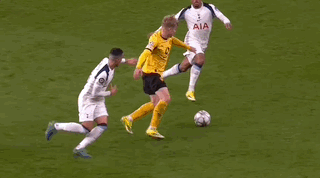 欧冠联赛阶段第7轮,热刺主场2比0力克10人多特蒙德。第14分钟,热刺角球二次进攻,奥多贝尔横传门前,克里斯蒂安·罗梅罗乱军中扫射破门,为主队先拔头筹(图①);第24分钟斯文松铲倒奥多贝尔,VAR复核后主裁判改判将斯文松直红罚下场(图②),多特客场少一人作战;第37分钟索兰克接应奥多贝尔传中,脚下拌蒜幸运将球撞入大门(图③)。最终热刺2比0获胜,暂时升至积分榜第4,主帅弗兰克也暂时度过了信任危机。
