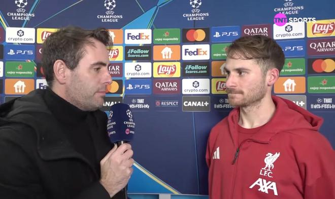 欧冠联赛阶段第7轮,利物浦客场3-0击败马赛,利物浦中场麦卡利斯特赛后接受了TNT体育墨西哥频道的采访。