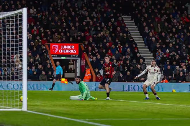 英超第23轮比赛中利物浦队客场2比3不敌伯恩茅斯队