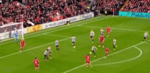 比赛开始后,纽卡斯尔反而踢得更加主动,前20分钟连续制造威胁,红军只能来个防守反击战术,等待机会。第25分钟,哈维-巴恩斯主罚任意球绕过人墙直奔死角,皮球击中立柱弹出,安菲尔德惊出一身冷汗。