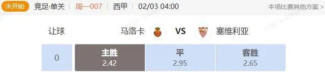 竞足 周一007 西甲 马洛卡VS塞维利亚