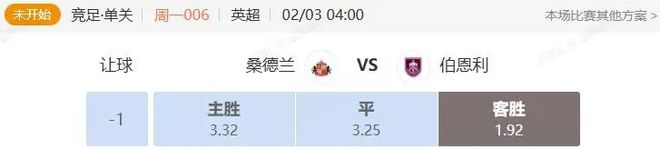 竞足 周一006 英超 桑德兰VS伯恩利