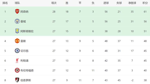 截至目前,曼联反超切尔西,排名回到第四位,领先身后的切尔西和利物浦2大强队3分。相比2个争四对手,曼联的表现无疑更加稳定,无论对阵强队还是实力不如自己的对手,曼联都一视同仁,如今的他们,已经成为争四最大热门。