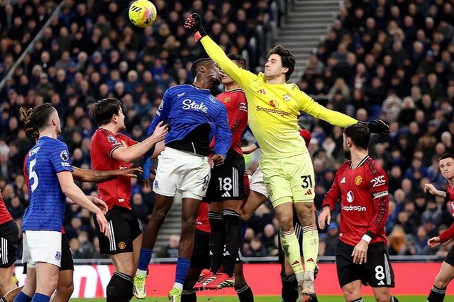 红魔首回合对阵埃弗顿在主场是输球的,本轮的客场之行是带着复仇的心态去冲击胜利,两队都是使用了4-2-3-1的阵型,红魔这边顶在最前面的是姆伯莫,梅努和卡塞米罗双后腰,拉门斯把守城门。比赛开始仅仅4分钟,红魔就创造了一次颇具威胁的进攻,库尼亚完成一脚抽射,可惜打在队友身上被挡出,随后阿马德补射又被门线上的防守球员解围。第31分钟,红魔在左侧开出任意球,皮球在第一点被解围,禁区外的达洛特得球后完成了一次高质量的远射,可惜皮球还是差之毫厘偏出,上半场双方0-0互交白卷。